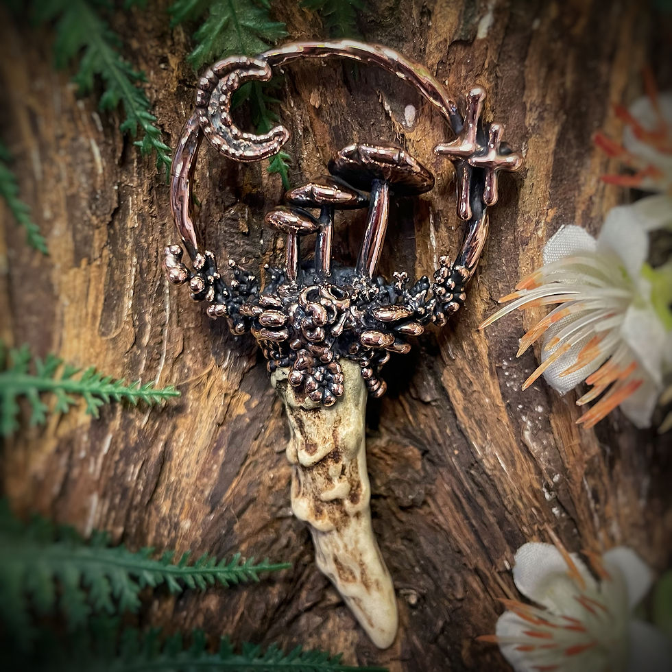 Deer Antler Electroformed Mushroom Garden Amulet